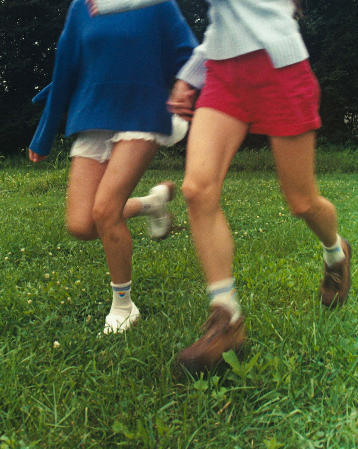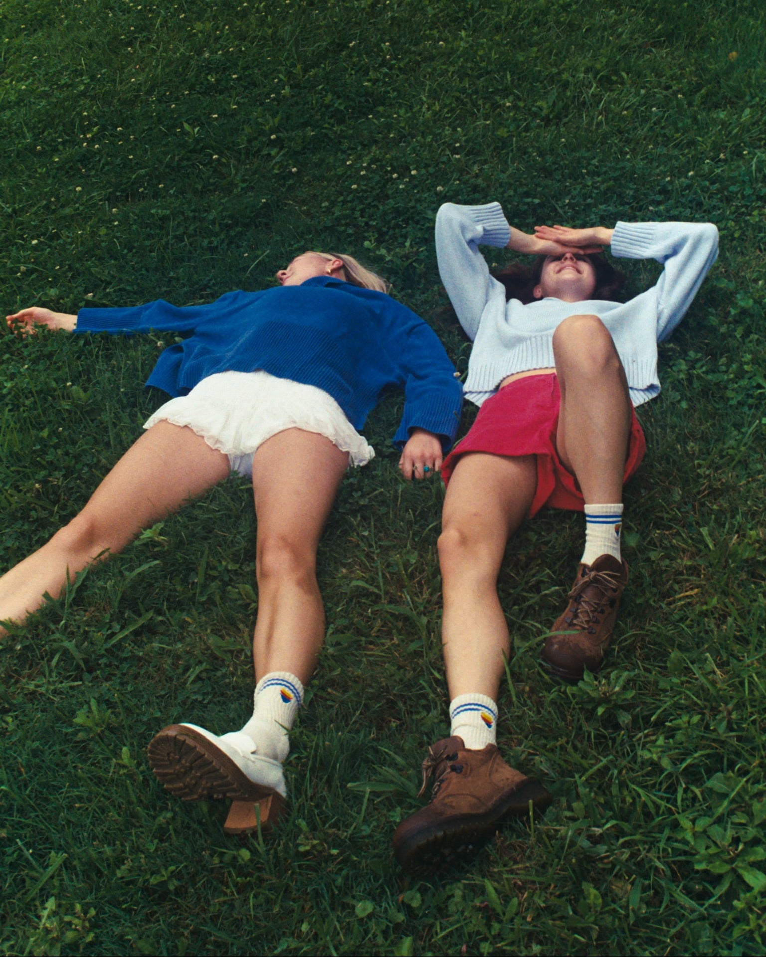 With a soft cream base with blue stripes, they're a nod to vintage athletic socks, reimagined for slow living.